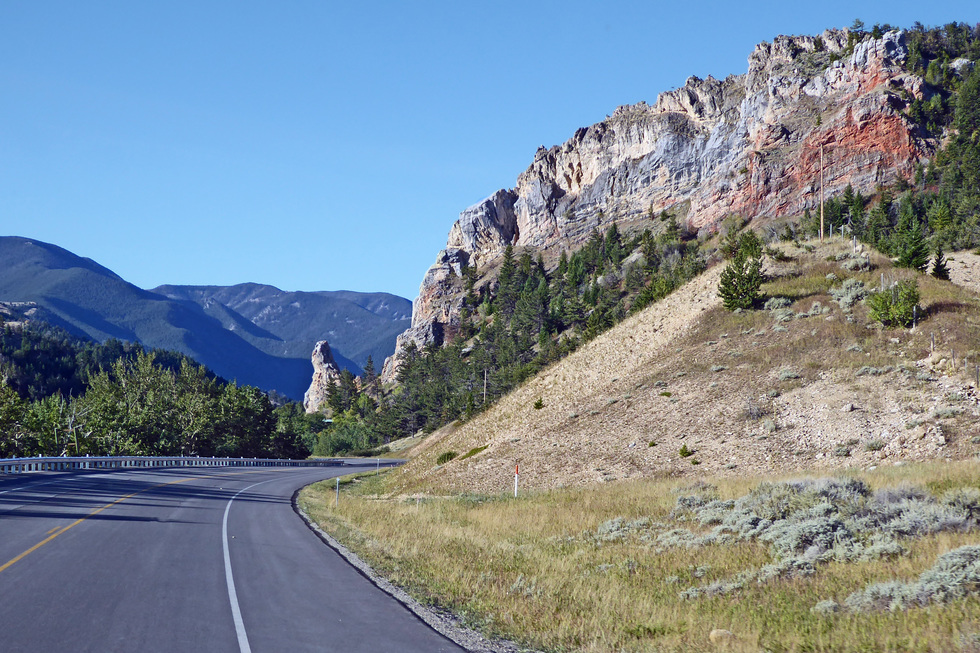 We're heading out of Red Lodge to up there. The rock layers of Wapiti Mountain are pretty awesome to our right. It took forever to try and get the photos to match up with the route despite using HAZtraks. At first I thot it was my photos that were off but then after several hours of work, I discovered it was the route's timing that seemed to be off. Of course, the time change created a bit of an issue between the camera and HAZtraks too.