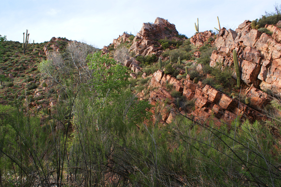 Whitford Canyon's red rock walls and Oak Trees early spring in Arizona along AZT section 18!