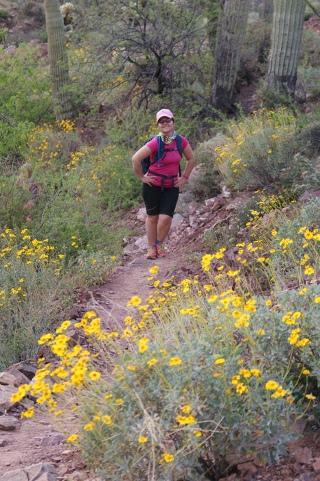 Karolien enjoying plenty of Wildflowers in Whitford Canyon, AZT section 18.