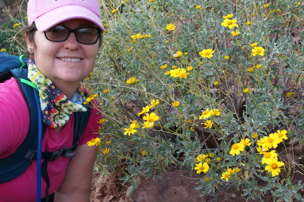 Karolien enjoying plenty of Wildflowers in Whitford Canyon, AZT section 18.