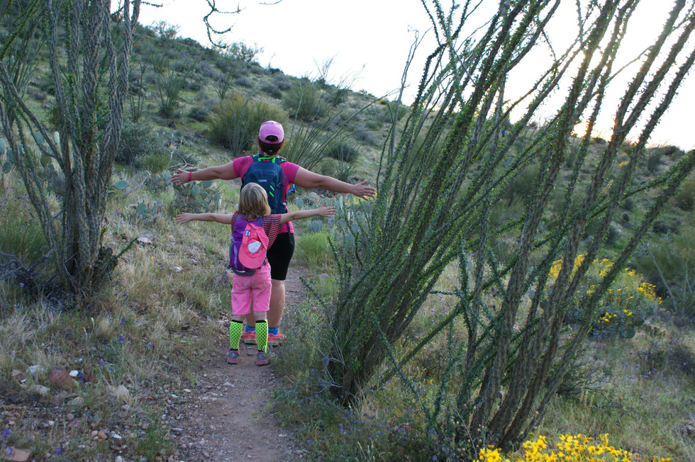Karolien and Bianka enjoying the Ocotillo south of Barnett Camp Road as we near the ridge line for sunset!