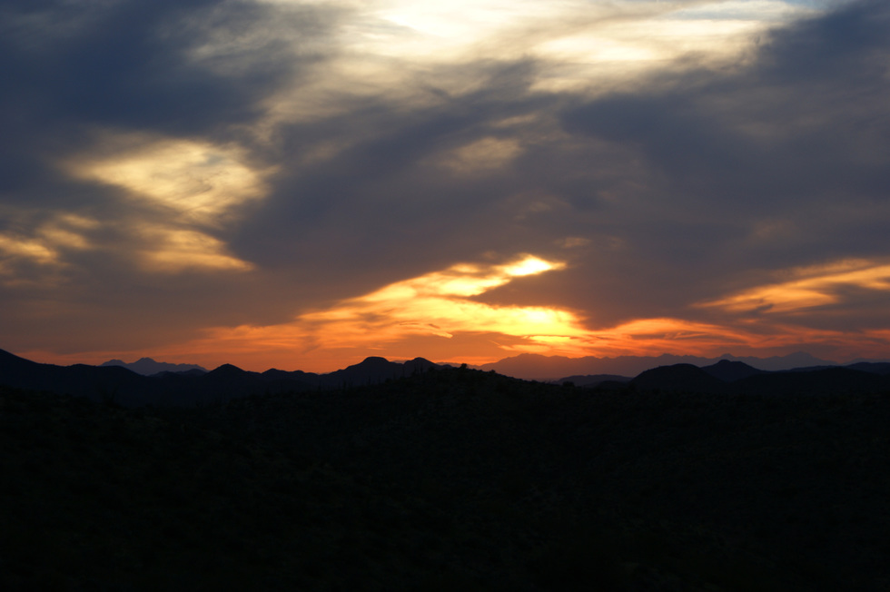The sky is setting up a beautiful sunset taken from the ridge line.