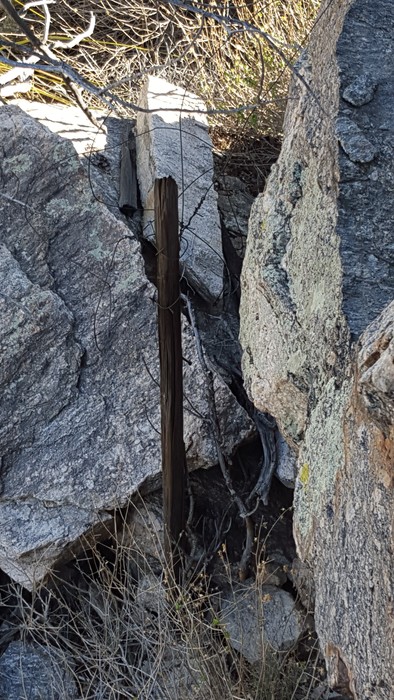 On the eastern side of the summit hoodoo are these old remnants of what I thought might have been an assist ladder (see the photo link below from johnlp which clears things up, its a broken Height of Light - thank you!)