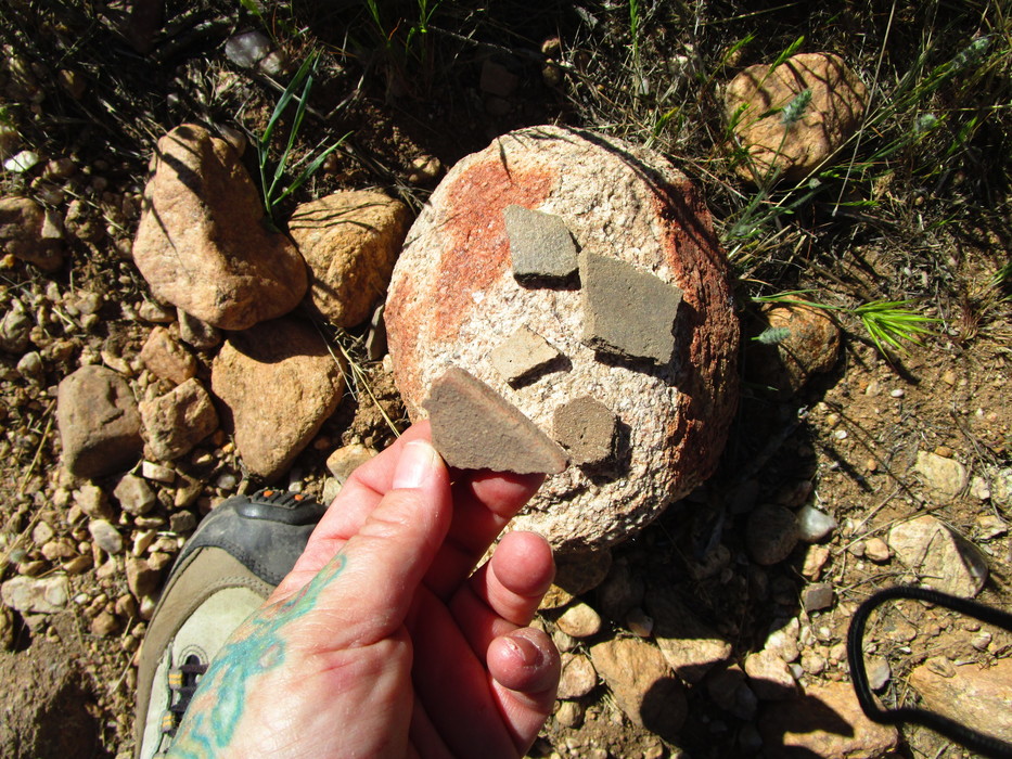 More pottery. That piece I'm holding is the rim of a wide bowl. The ranger said that as the firing process of the time was a bit hit-or-miss, a lot of the shards may have come from ruined pots-- there very well may have been a going pottery workplace in this village.