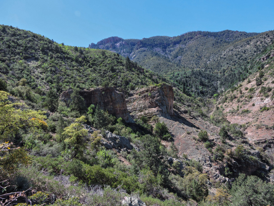 Looking up Billy Lawrence Canyon. There's a cairn on top of the nearest cliff at photo center. I considered going over to the top of the cliff to see if the cairn marked something of significance but the terrain between here and there did not look friendly.