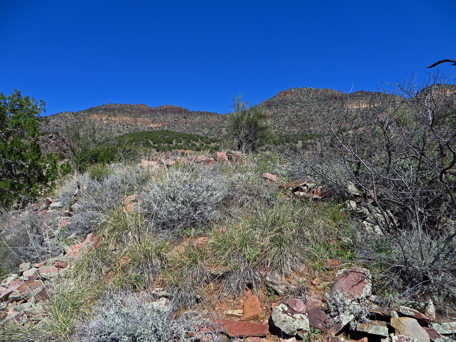 (we estimated 5-6 dwellings with a defensive wall but Lange's "Echos in the Canyon" estimates a large Pueblo of 12)