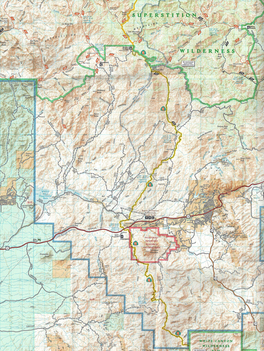 A great map with many features on it that hikers can see from AZT Section 18, including Hewitt Ridge, Hackberry Butte, Byous Butte, Montana Mountain, Picketpost Mountain and Telegraph Canyon AZT section 17 accesss. There are also many backroads and Apache Leap east of Superior! Click on "Original" to get a clearer copy that can be pinch zoomed.