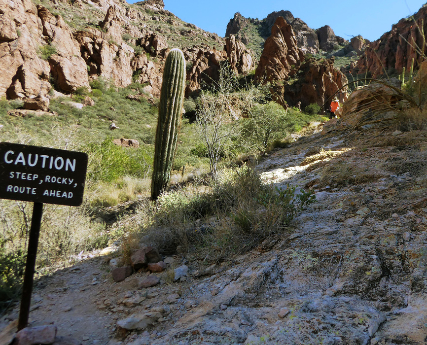 from my triplog: When we arrived at the trail, someone had put back up the sign about the ruggedness of the trail.