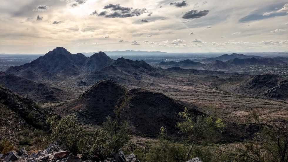 looking west toward Squaw Peak and beyond to the White Tanks.