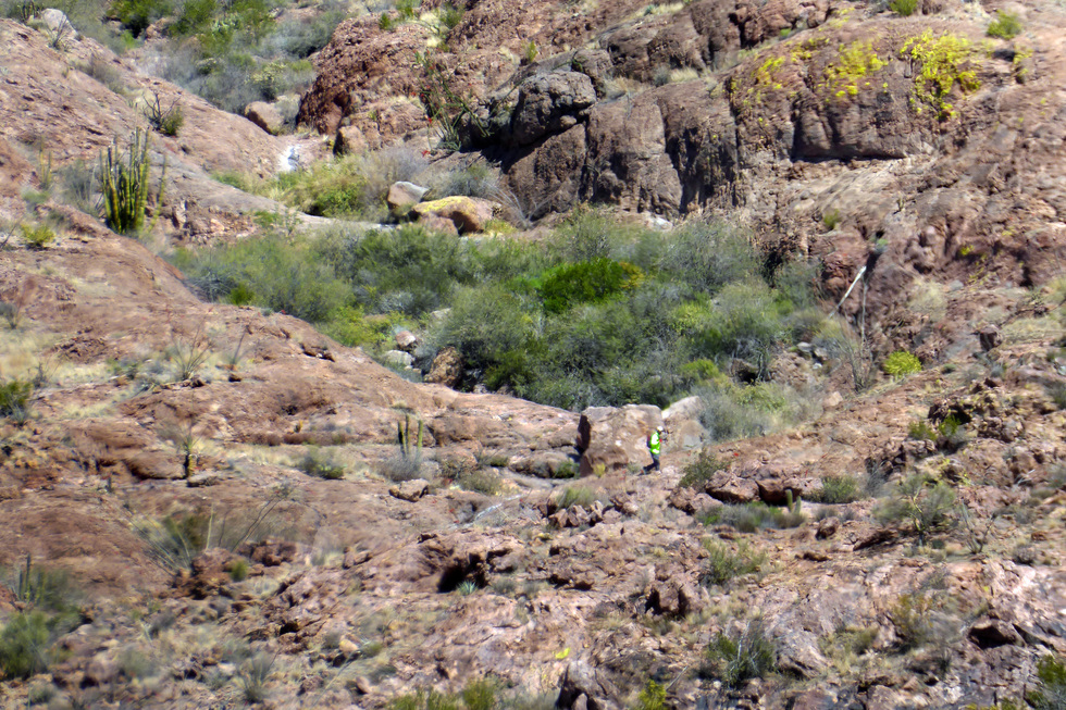 I could hear voices while I was sitting on my perch. Finally I spotted someone. That's Karl. Glad he had a bright shirt on otherwise I may not have spotted him. Once again, I am zooming pretty good here.