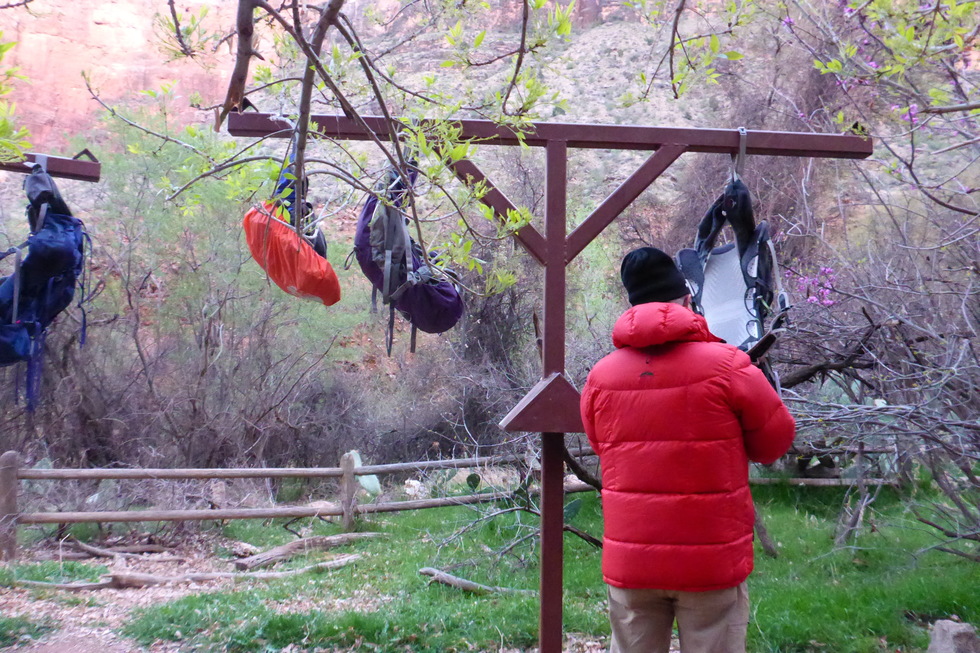 Hanging our packs to keep the critters out.