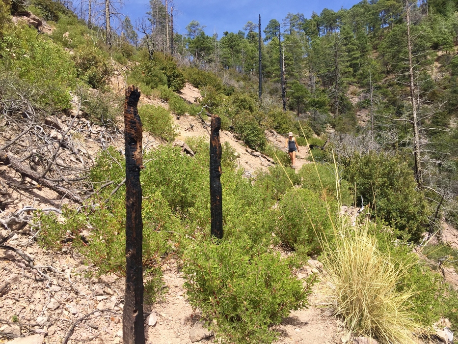 There appears to be some old burned out sign posts on the hike down Mormon Ridge Trail. These posts are somewhat in the middle of the trail very out of place