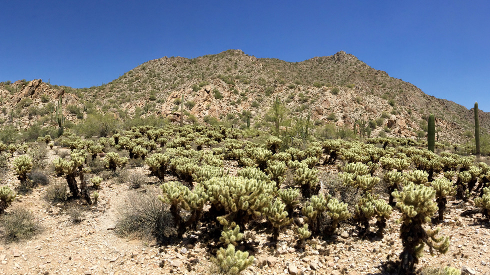 A look back at the ridge I had descended and the cholla forest across the lower slopes.
