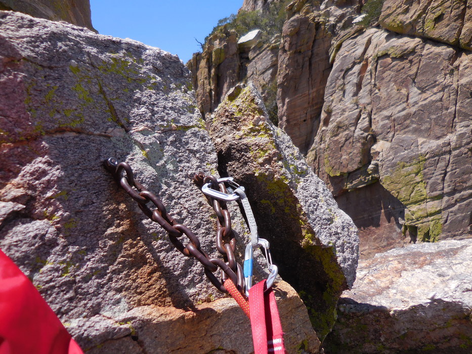 Two nice top anchors with chains, with Prominent Pt in the background