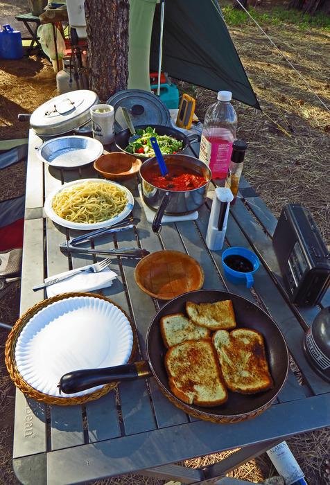 (T-hank-S to Oregon Hiker for his help with prep of the Garlic Bread & Salad)