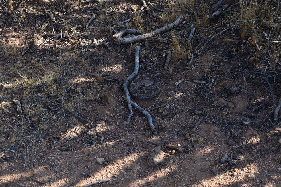 Well it was my luck day. I walked over the little guy. NEVER SAW HIM. My friend a few paces behind me made a sound . He saw the head pop up after I walked over him. Now he was in striking mode. My luck day.