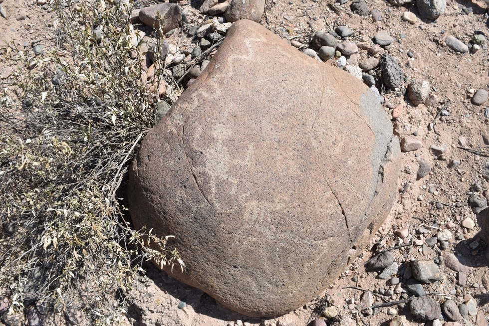 Knew of several petroglyph sites in the area. Some were just a handful of glyphs two sites had several glyphs. The five sites AZ U:6:112,122,121,108,and 107. This panel was a random find as we walked the creek bank