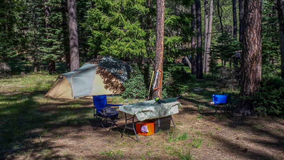 Drove up to Camp GH 3 on FR139C on Wednesday afternoon to set up the kids 8 person family tent so it would be ready when they arrived late Thursday. Lloyd just bought the tent so I got to be the first to set it up. It's a monster. Took me two hours but I was just putzing around taking frequent breaks to enjoy the beautiful afternoon. FR139C is zoned for no vehicles more than 30 feet from road center so had to leave the FJ parked by the road. That's where I slept. The campsite is about 100 ft off the road.