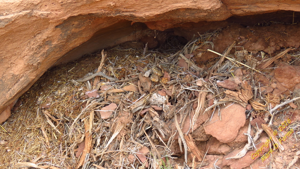 A little critter den made up of cat scat, Juniper cones and miscellaneous sticks and stones.