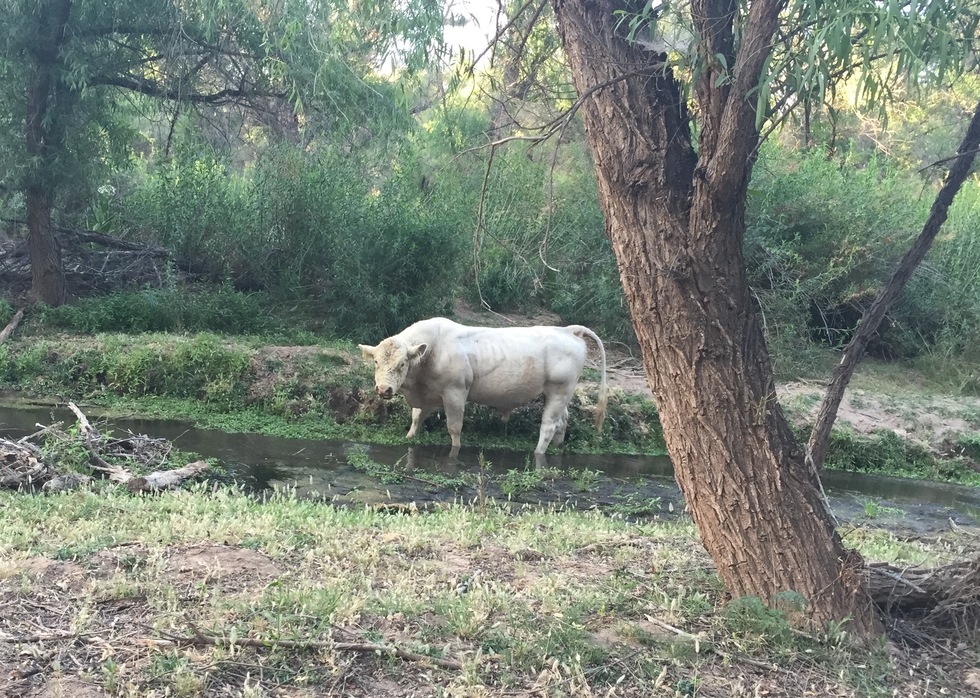 I saw TONS of cattle on this hike... as well as: horses, deer, wild turkey, a herd of javelina, lizards, and birds. Unlike the past several hikes where I've experienced constant or frequent buzzing of bees, I was hardly buzzed on this one. And luckily, I did not encounter any snakes, bears, or mountain lions... although I ran over [w/o hitting] a medium-large sized snake which may well have been a rattler on the way home, about 10 miles after leaving the park].