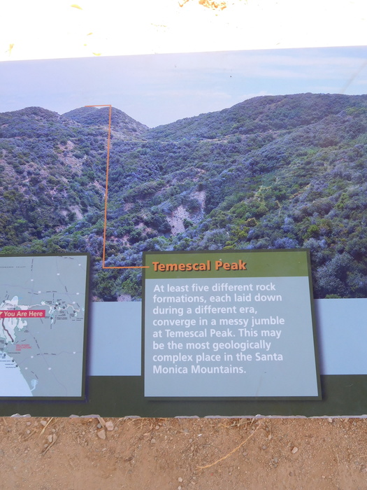 Misleading info about Temescal Peak on sign at Hub. Probably all accurate except for the pointer. Actual Temescal Peak is just off the right edge of this photo. So close. There are no trails near the double hill and getting to it would take a lot of tough bushwhacking.