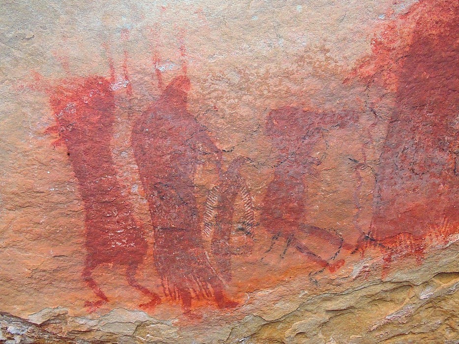 Back of a dark Basketmaker alcove, shot laying on my back. I really liked the detail in these small figures, the apparent fringe on the garments.