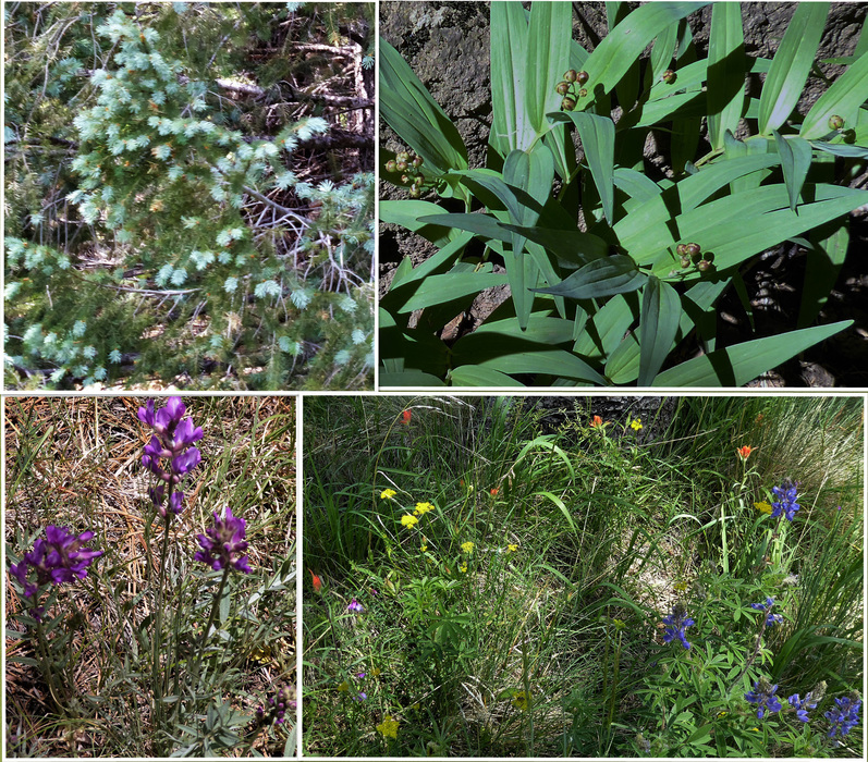 some more flora. The top left photo is a little blurry but I was zooming from quite a distance at what I think is new blur spruce growth. I'm not sure what the flora is going to be in the upper right but its buds are pretty impressive. The lower right is a smattering of flowers in this one area.