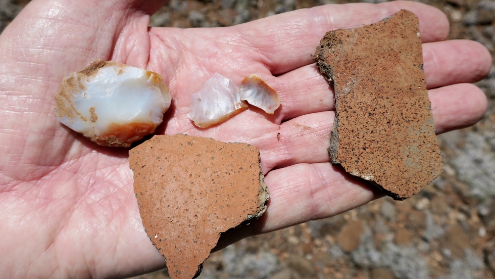 After just a few hundred yards of walking I started finding pottery pieces and flaked stone.