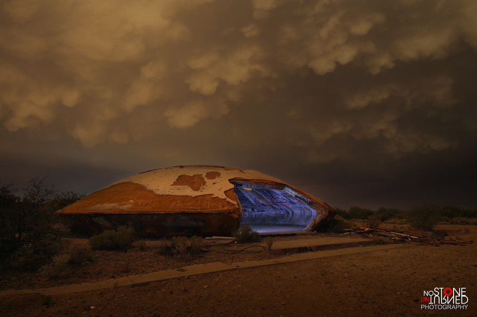 Disclaimer: this photo is a composite. The foreground was a 259sec exposure + me with a flashlight inside.