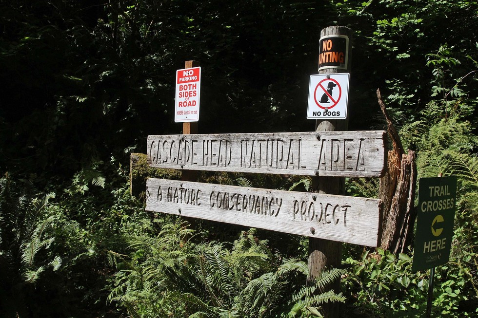 Starting here, the trail ascends up to the Grasslands and on up to Cascade Head summit.