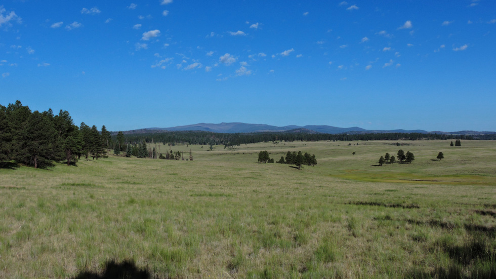 Morning view to the northeast at the start of my hike which would cross this high meadow on the right side of this photo.