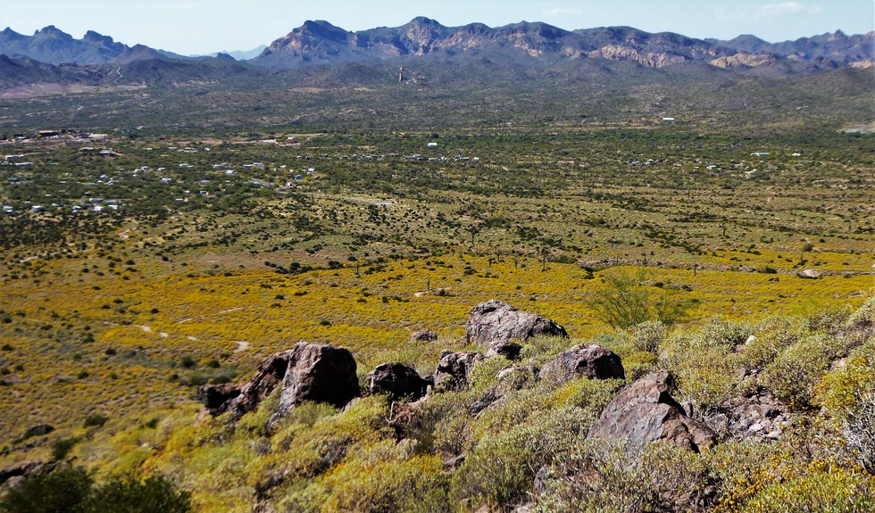 Looking toward the Goldfields. I can see the Green Thumb in center background below Dome Mountain. Bulldog Ridge on left.