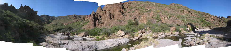 Playing around with my camera in the smoothrock section. Poor panorama, Left is upstream.