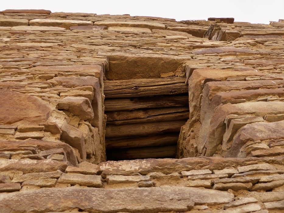 a look at some of the wood beams in the thick wall above the door? The narrow groove that extends the length of the wall held in the upper layers of the balcony in place and tied the balcony to the wall. Above the groove, doorways led out onto the balcony. chacoarchive.org/cr ... etl/
