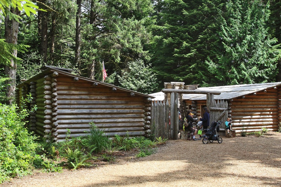 The replica of Fort Clatsop. It is not clear where the old fort stood. But close to this one, according to park info.
