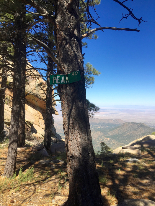 There's a fantastic little basin below Aspen peak that would make for a great spot to camp. An appropriate street sign is attached to a tree there.