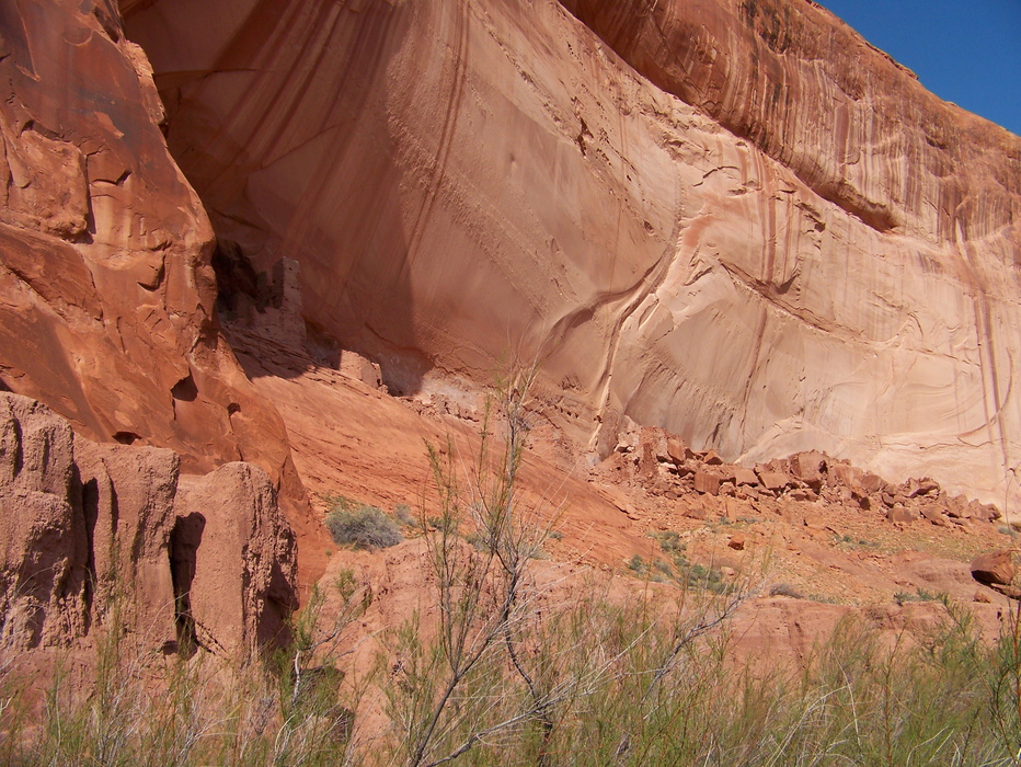 The largest part of the three-part ruin. What looks like a rock-fall is a small rockfall with buildings on top.
