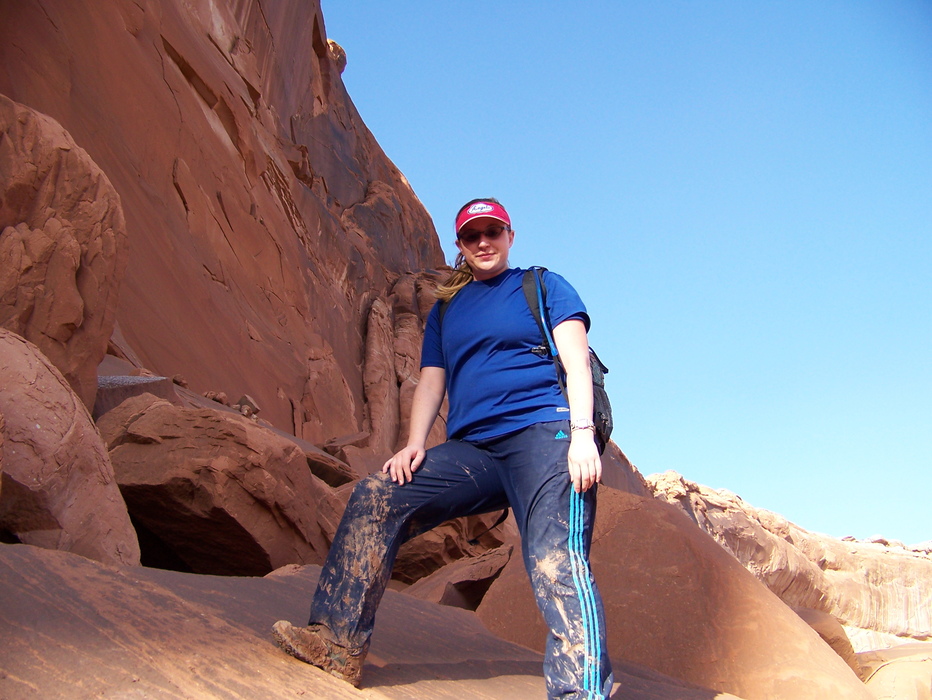 Superwoman Ely, showing off the mud from our encounter with quicksand. Everyone except Beth was knee to mid-thigh deep.