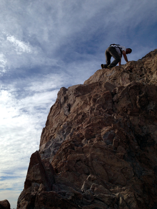 "400 foot drop on the left of a 1 foot wide knife ridge" ( a wide foot )