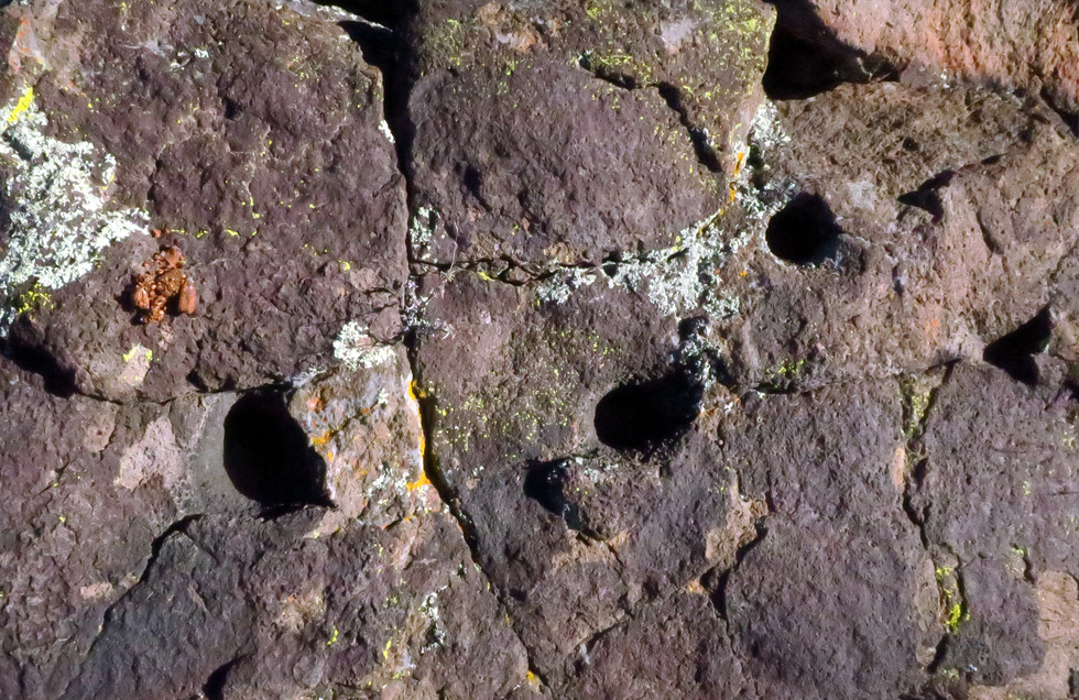 I'm about 75% sure these are mortar holes...quite a few along the way.