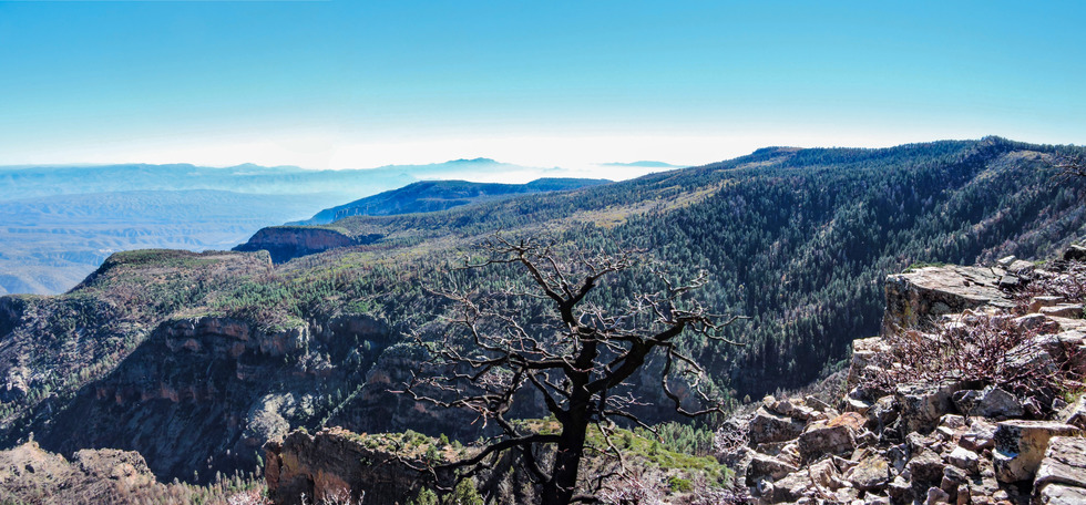 Poor lighting and hazy but it shows the area several trails pass through including the Murphy Ranch Trl 141 and the Reynolds Crk Trl #150. It appears that this aera was not heavily burned by the Juniper Fire except the ridge tops on the left side of the photo.