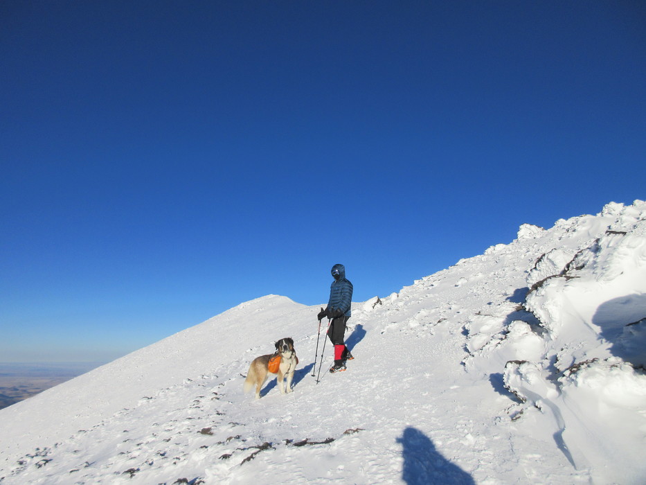 The last of a party of 3 guys still headed for the summit 20 minutes after I left it, and Bear, a furry Saint Bernard who appeared to enjoy the cold.