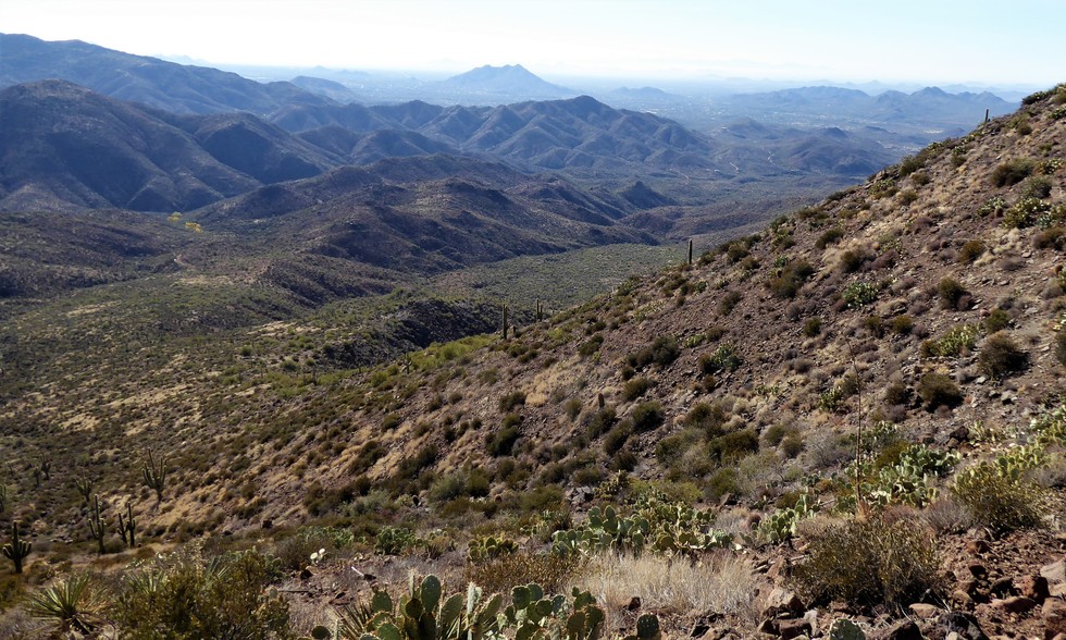 looking toward Cave Creek. Very hazy in the distance today. Cottonwood Spring area in left of photo.