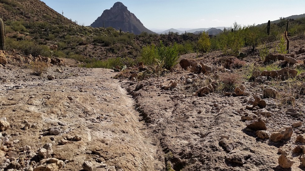 This is the old tread of the AZT, with what appears to be the worn groove of an old Wagon Wheel.
