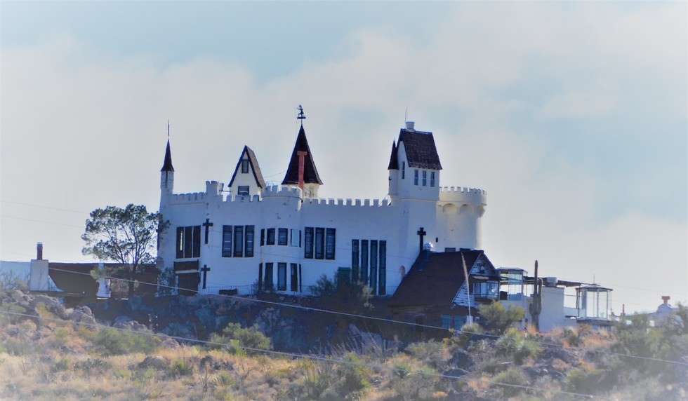 Agua Verde Castle was built by Duane Durham in the 1970's as a family residence. This impressive edifice sits on a hilltop above Agua Verde (green water) Creek, and is easily visible from Interstate 10 and other surrounding areas