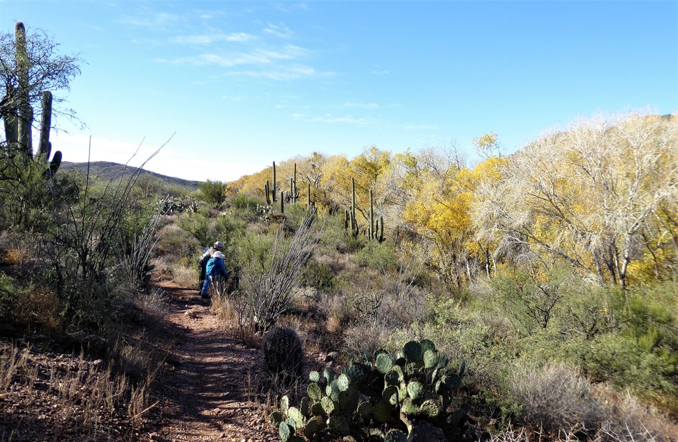 alongside the Agua Verde River some fall color still persisted as the others read one of the interpretive signs in this area.