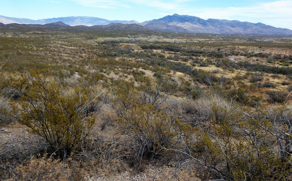 looking over Davidson Canyon as it spills into the Las Cienegas Creek area with the Rincon Valley and Mountains in the background.