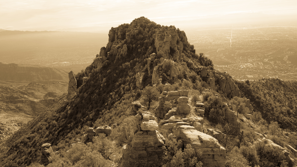 Looking back at the alternate route down from the summit, from the ridge to the north (Approach ridge on the right side).