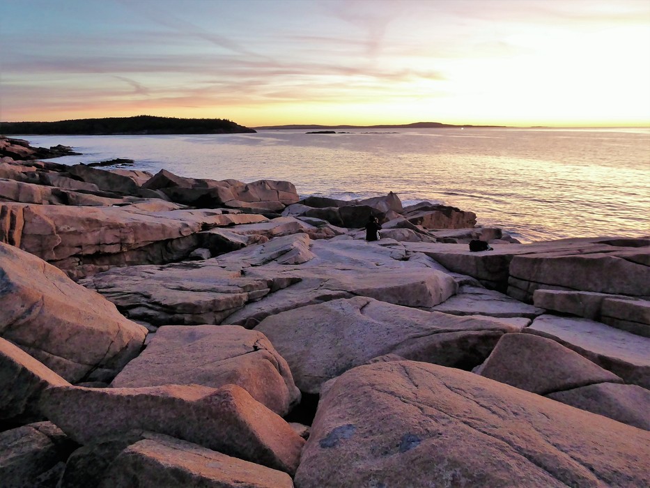 MONUMENT/NEWPORT COVE. Our last day at Acadia National Park started with a sunrise shoot at Monument Cove to the other side of Boulder Beach (to the right behind me along with Otter Cliffs and Point). Newport Cove is to the left. This area across from the Sand/Ocean Beach TH. Down to the left is Thunder Hole which we didn't get to see.