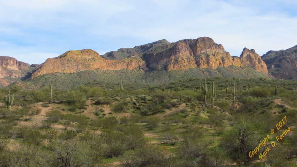 Rhyodacite Canyon is on the other side of this ridge. We entered the canyon from the far left and reached the dark area at the right edge of the photo before turning around.
